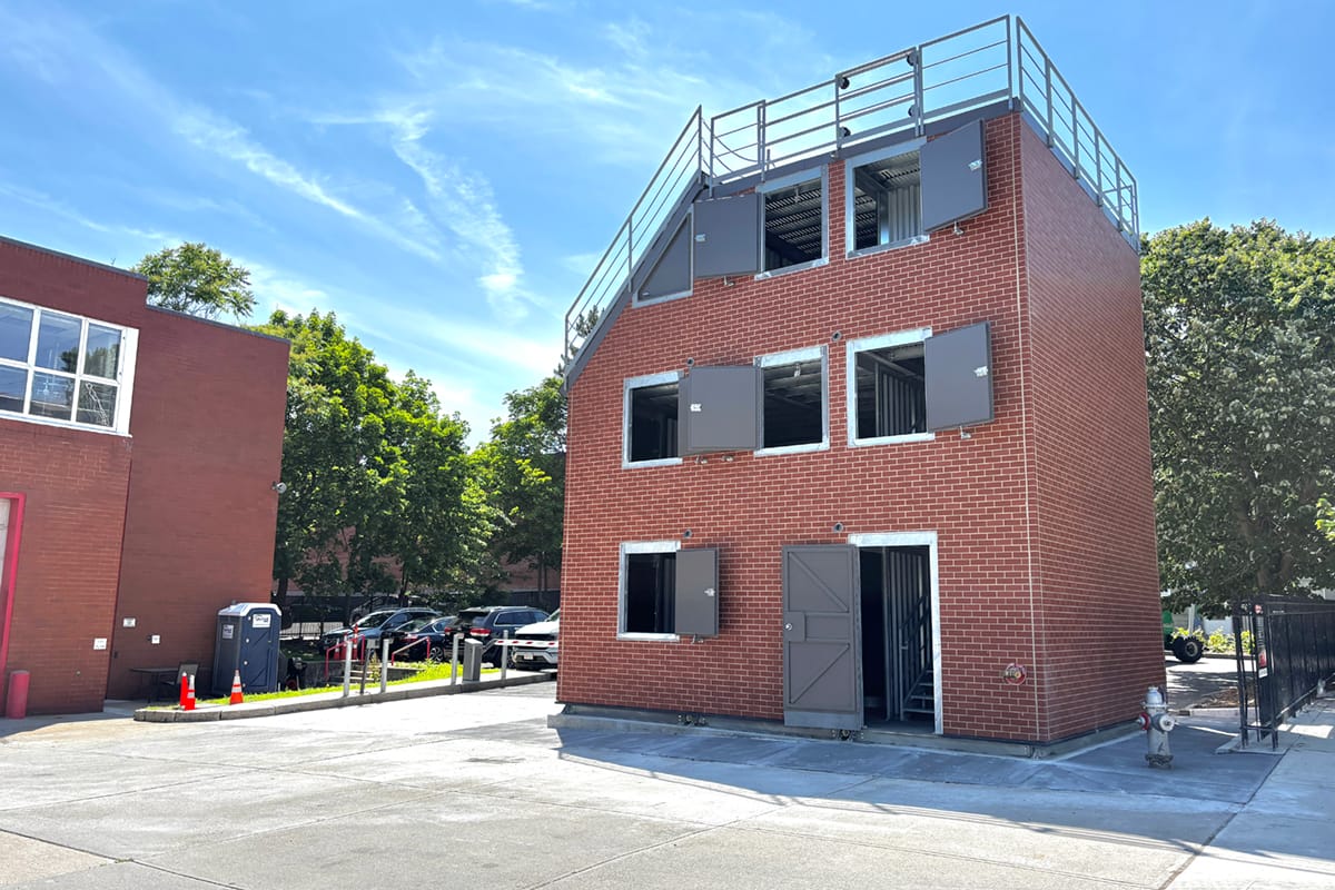 Le service d'incendie de la ville de Cambridge, en partenariat avec WHP Trainingtowers et Triumph Modular, a achevé la construction du centre de formation incendie modulaire Modx sur mesure, adjacent à la caserne de pompiers Engine #3. Ce bâtiment auxiliaire de trois étages et d'une superficie de 960 pieds carrés, fabriqué en acier galvanisé, a été conçu pour des simulations d'incendie réalistes, avec des composants remplaçables pour résister à une utilisation intensive. Afin de s'harmoniser avec l'esthétique de la caserne existante, la structure a été recouverte d'un revêtement en brique.